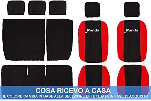 Lupex Shop Copri-sedili Auto Compatibili Panda Seconda Serie (mod.169) Versione 60e40 | Nero Rosso | Set Copri-Sedile Anteriori e Posteriori | Logo Ricamato | Airbag Compatibile | Accessori Auto