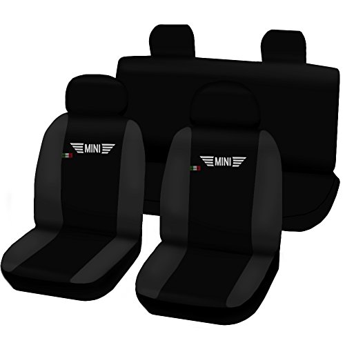 ⚡ Lupex Shop Coprisedili compatibili per Mini, con logo ricamato al centro delle fodere anteriori (airbag laterale compatibili) e con schienale posteriore diviso per la versione 50 e 50 e seduta intera