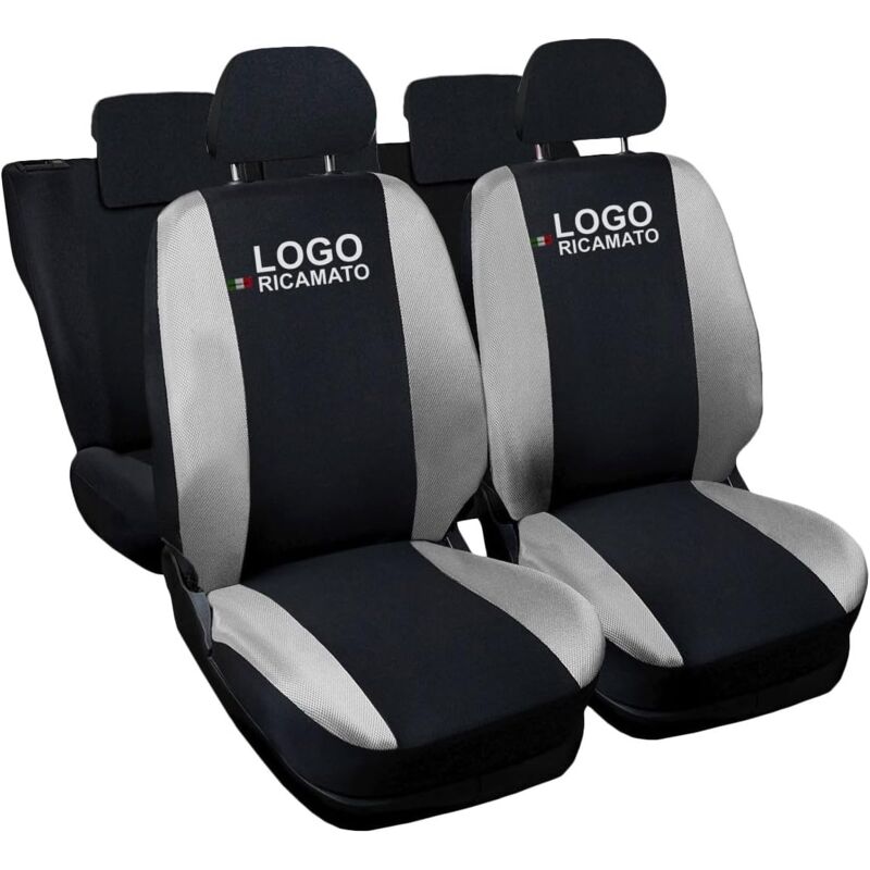 Coprisedili compatibili per Clio, con schienale posteriore diviso per la versione 40e60 e seduta intera. Fodere anteriori compatibili con airbag laterale Realizzati in tessuto misto cotone e poliestere con tessuto elasticizzato nella parte posteriore della fodera. Logo Ricamato. Lavorazione prodotto interamente italiana Le fodere sono compatibili per Clio III Serie (2005-2013), IV Serie (2012-2019), V Serie (2019 ad oggi) ad esclusione della versione Hybrid Set Completo composto da 12 pezzi | 4 Coprisedili anteriori (lato guida 2pz + lato passeggero 2pz), 3 Coprisedili posteriori (Schienale 2pz + seduta), 5 Copri Poggiatesta. Set Ganci incluso Utile per non macchiare e/o danneggiare i sedili della tua auto e per personalizzare gli interni della tua auto migliorandone l'aspetto. Si prega di evitare di usare violenza durante il montaggio, in quanto gli elastici potrebbero strapparsi se la tensione è troppo alta