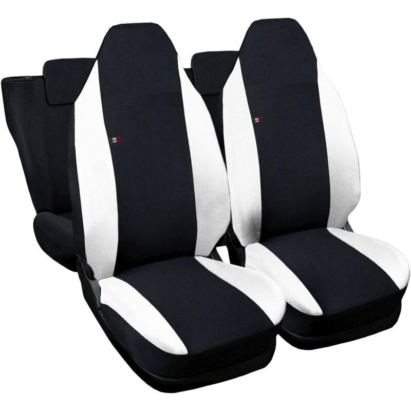 Coprisedili compatibili per Smart ForFour, con copri poggiatesta anteriore unito allo schienale e suduta, formando un unico blocco. Schienale posteriore diviso per la versione 50e50 con seduta intera Realizzati in tessuto misto poliestere con tessuto elasticizzato nella parte posteriore della fodera. Lavorazione prodotto interamente italiana Le fodere sono compatibili per Smart ForFour seconda serie Un set Completo composto da 7 pezzi | 2 Coprisedili anteriori (lato guida + lato passeggero), 3 Coprisedili posteriori (Schienale 2pz + seduta), 2 Copri Poggiatesta. Set Ganci incluso Utile per non macchiare e/o danneggiare i sedili della tua auto e per personalizzare gli interni della tua auto migliorandone l'aspetto. Si prega di evitare di usare violenza durante il montaggio, in quanto gli elastici potrebbero strapparsi se la tensione è troppo alta
