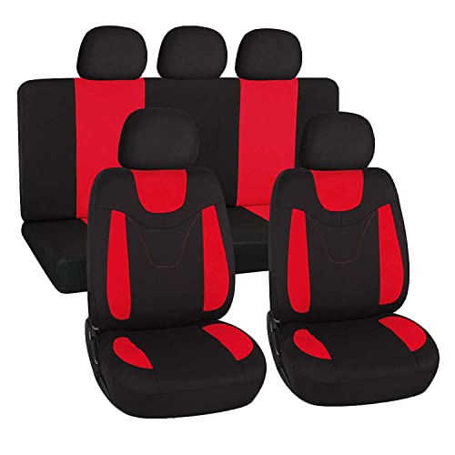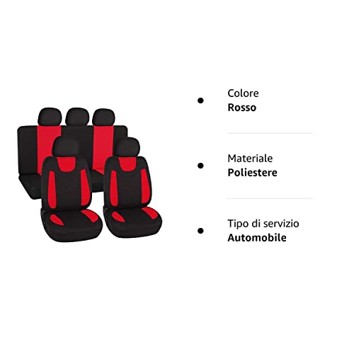 Lupex Shop Coprisedili universali in poliestere adattabili a tutte le auto con sedili standard - con 2 zip sui schienali posteriori - modello N (Rosso)