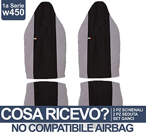Lupex Shop Coprisedili compatibili Smart Prima serie W450 - dal 1998 al 2007 con spacco laterale per adattarlo con la cintura di sicurezza. Poggiatesta integrato allo schienale formando un unico blocco unito