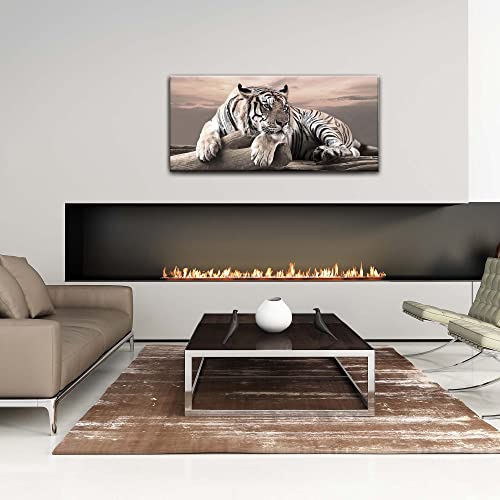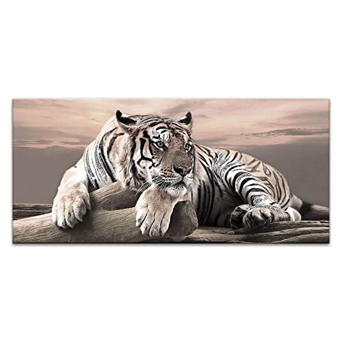 Lupia Quadro Moderno su Tela con Brillantini e Glitter Argento Tigre Bianca, per Soggiorno, capezzale Camera da Letto 65x149 cm