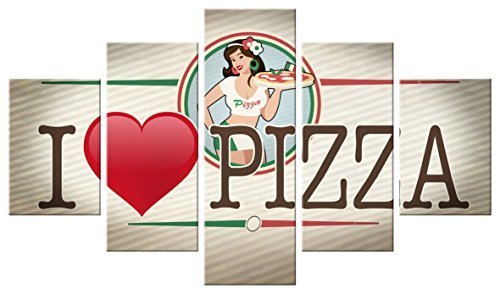 Lupia Quadro Moderno 5 Pezzi in Legno Vogue 48X85 cm I Love Pizza