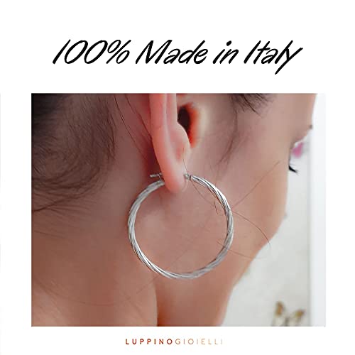 Luppino GIOIELLI Orecchini da Donna Cerchi in Argento 925 Rodiato 6,30 gr | Spessore Cerchio 3mm Diametro 40mm Creole intrecciate 925 Sterling Silver