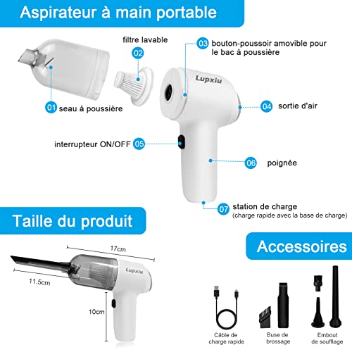 Lupxiu Mini Aspirabriciole Senza Fili, 2 in 1 Auto Senza Filo Mini Aspirapolvere Portatile con USB, per Desktop, Casa, Tastiera, Auto, Ufficio, Moquette, Peli degli animali domestici