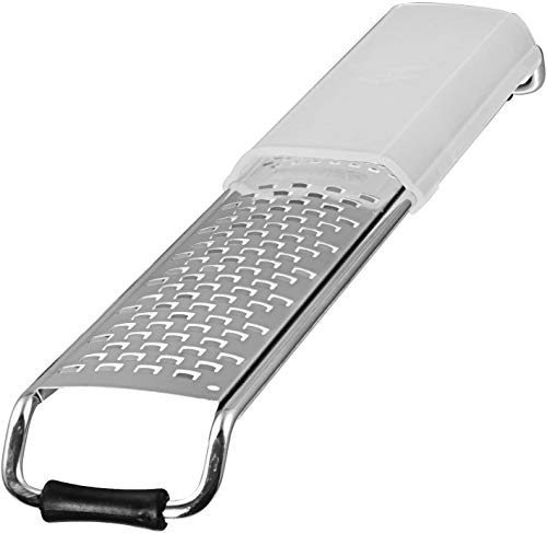 Grattugia con tecnica lame RazorTech ultra tagliente^Gli ingredienti non vengono triturati ma tagliati^Con due superfici grattugianti (fine e media)^Con protezione scorrevole per la mano per una lavorazione sicura^In acciaio INOX 18/10