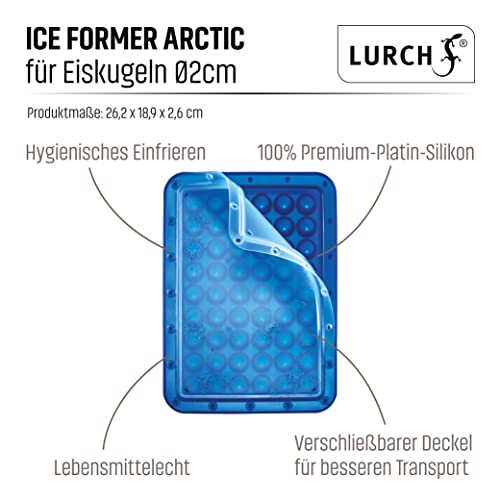 Lurch 240770 - Stampo per ghiaccio Arctic, sfera Ø 2 cm, colore: blu, per 54 cubetti di ghiaccio con coperchio trasparente blu