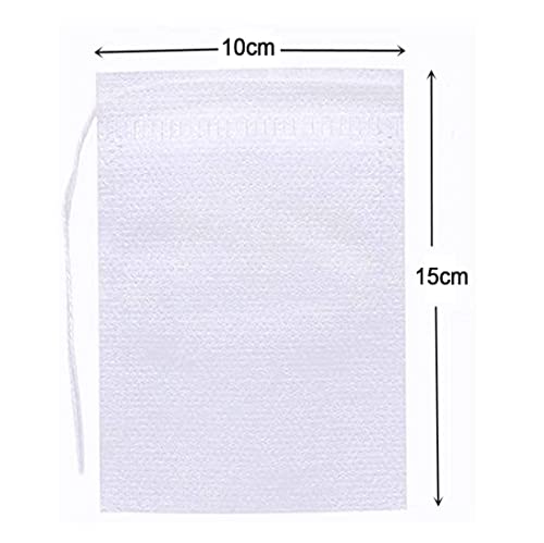 Luriseminger 200 Pezzi Sacchetti filtro per tè usa e getta, Sacco filtro in tessuto non tessuto, sacchetti filtro da tè vuoti con coulisse per tè, spezie, erbe aromatiche (10 x 15cm)