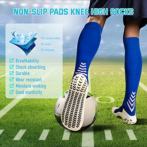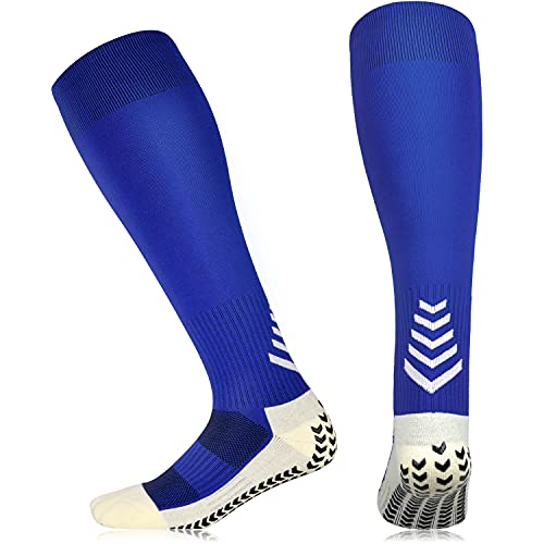 LUROON Calzini Calcio Uomo Donna Antiscivolo Calze a Compressione Gambaletti Calze Calzini Traspirante Sportivi Rinforzati per Corsa Escursioni Ciclismo Basket Tennis Yoga Unisex (Blu, 38-47)