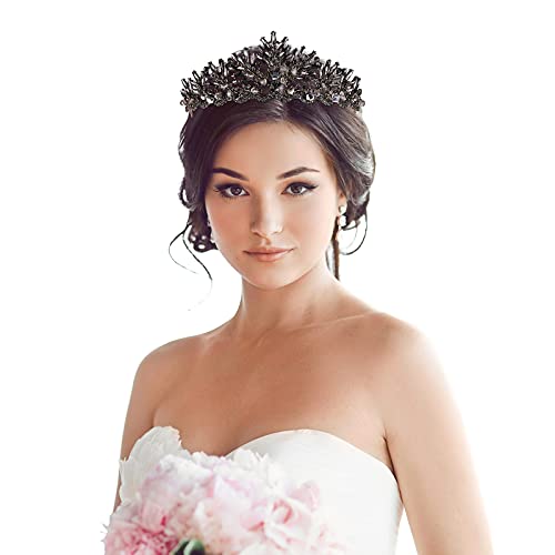 Lurrose Accessorio per Capelli da Sposa Diadema Nuziale Barocco con Strass Corona nera per la Festa di Nozze