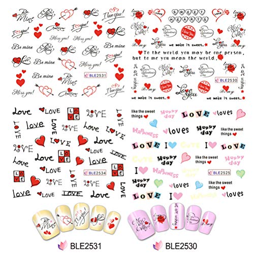 Lurrose Autoadesivi Adesivi di Arte del chiodo della Punta di autoadesivi 4PC Decalcomanie Autoadesivo Decorativo del Cuore di Giorno di San Valentino