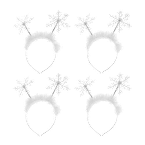 Lurrose, cerchietto per bambine con fiocchi di neve, con glitter e piume, 4 pezzi