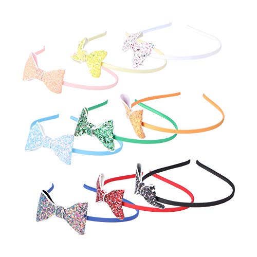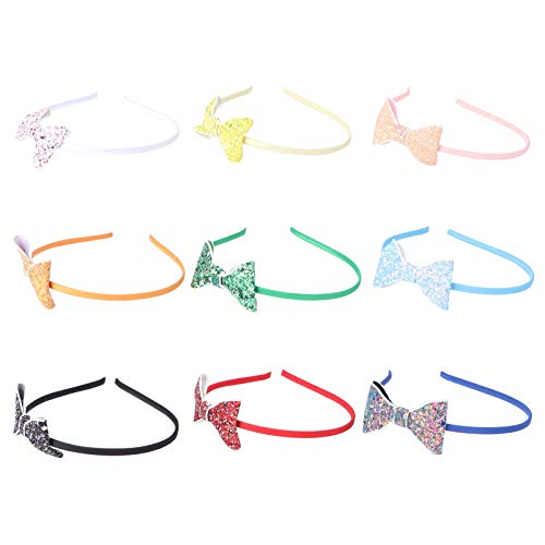 Lurrose - Cerchietto per capelli con fiocco, con brillantini, 9 pezzi colore casuale