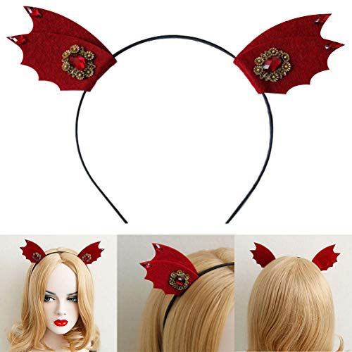 Lurrose, cerchietto per capelli con orecchie da elfo, per Halloween, cosplay, travestimenti, feste in maschera, cerchietto per capelli con cristalli (rosso)