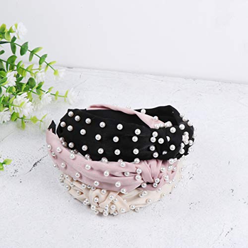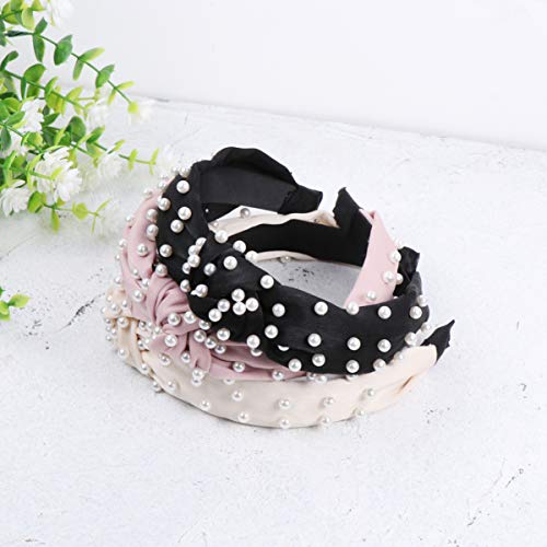 Lurrose - Cerchietto per capelli con perle, in raso, con nodo a croce, 3 pezzi