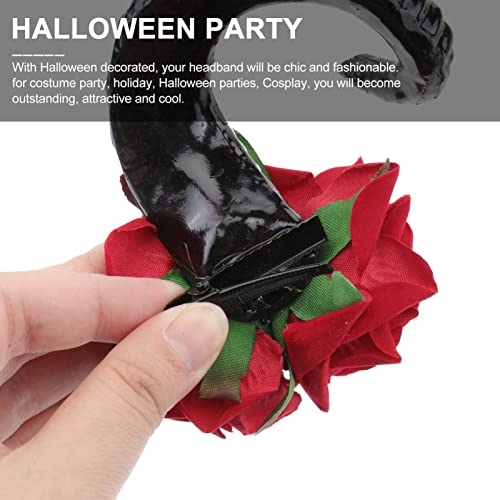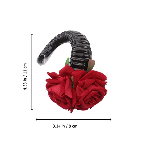 Lurrose - Coppia di fermagli per capelli, con corno e rosa, stile gotico, misura grande, accessori per capelli per feste, Halloween e cosplay, colore: rosso rosa