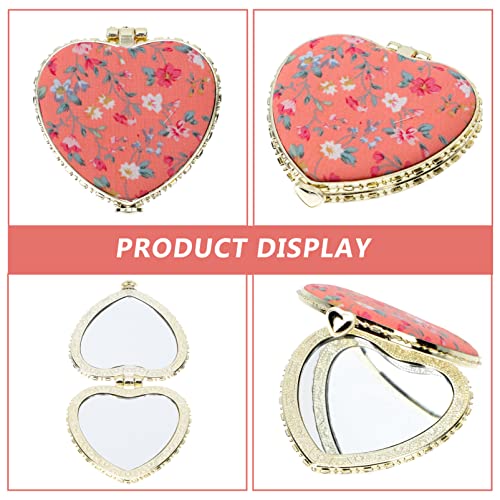 Lurrose 2Pcs Cuore Pieghevole Specchio Tascabile Mini Boho Fiore Vintage Trucco Specchio Specchio Cosmetico Compatto per Le Donne Ragazza Borsa da Viaggio Decorazione Rosa