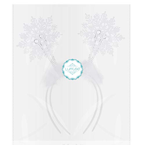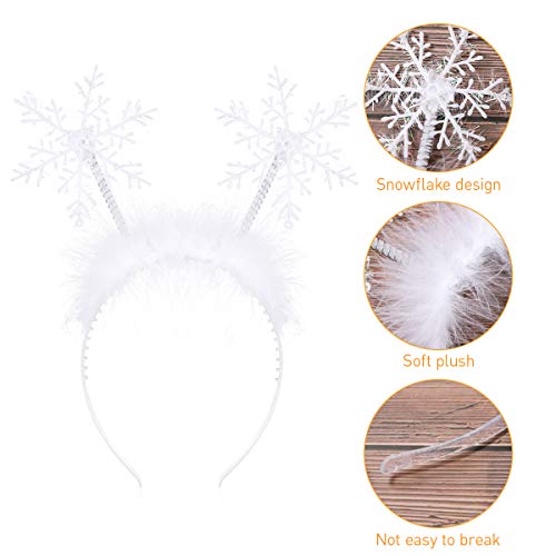 Lurrose, 2 fasce per capelli natalizie con fiocchi di neve, fiocchi di neve e piume, accessori per capelli per Natale