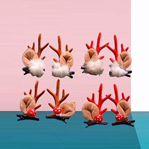 Lurrose 4 paia di fermagli per capelli natalizi con corna di renna, con pompon a forma di fungo, per Natale, vacanze, feste