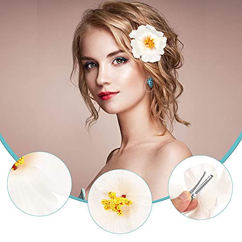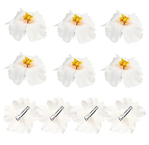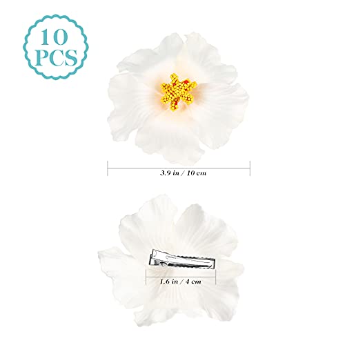Lurrose - Fermaglio per capelli a forma di fiore di ibisco artificiale, per feste estive, fai da te, per hula e capelli, confezione da 10 pezzi, colore: bianco