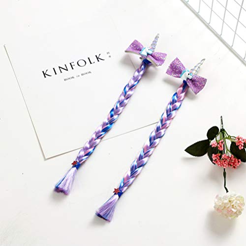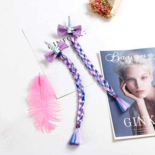 Lurrose - Fermaglio per capelli a forma di unicorno, con paillettes, con fiocco e trecce, per bambine e ragazze