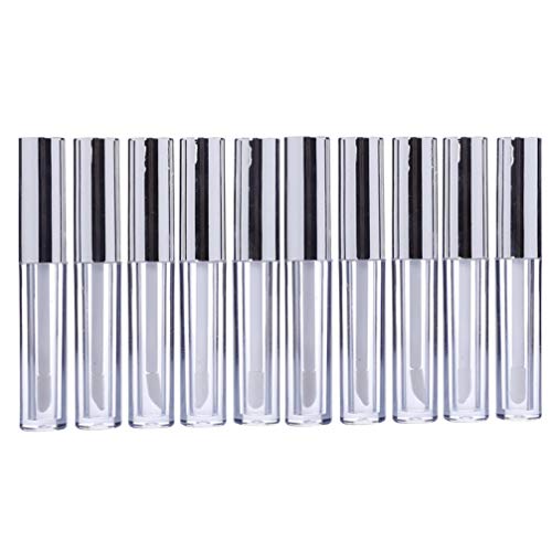 Lurrose - 10 flaconi di lucidalabbra da 10 ml, con bacchetta, in plastica vuota, per rossetti, campioni fai da te (argento)