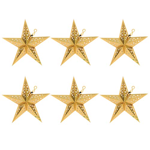 Lurrose 6 lanterne di carta a forma di stella scavate fuori, lanterne a forma di stella da appendere al soffitto, decorazione per matrimoni, compleanni, Natale, feste, 30 cm, oro