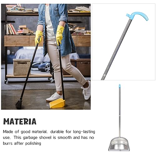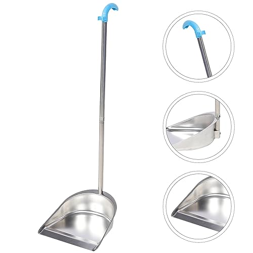 Lurrose Pattumiere Domestiche Spazzatura Pattumiere con Manico Lungo Paletta Verticale in Acciaio Inox Stand Up Paletta Immondizia per Lobby Garage Casa E Cortile 85X28cm Pattumiera