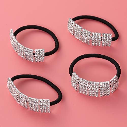Lurrose 4 Pezzi di Cristallo di Strass Capelli Corda Elastica Capelli Anello Coda di Cavallo titolari di funi Fascia per Capelli