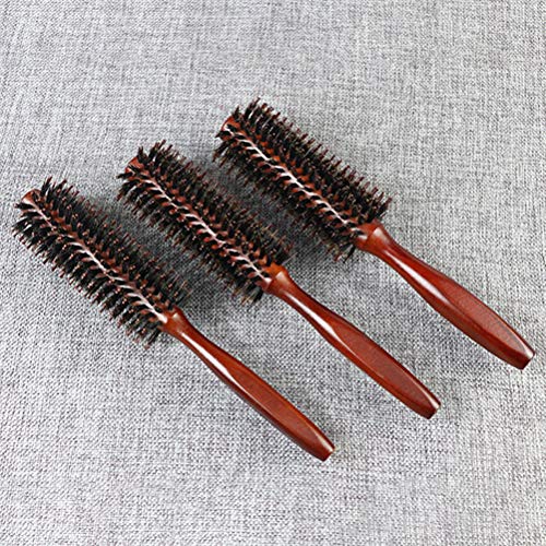 Lurrose Spazzatura capelli Combina di Bristole Nylon Twill Spazzola Essenziale Combo rotondo con manico di legno per capelli Curling Asciugatura marrone