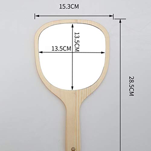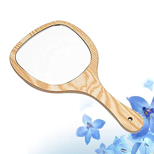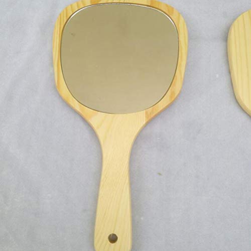 Lurrose Specchio portatile in legno con manico Cornice in legno Trucco portatile fissato al muro con foro per il bagno Specchio da bagno per uso domestico di viaggio del salone di trucco