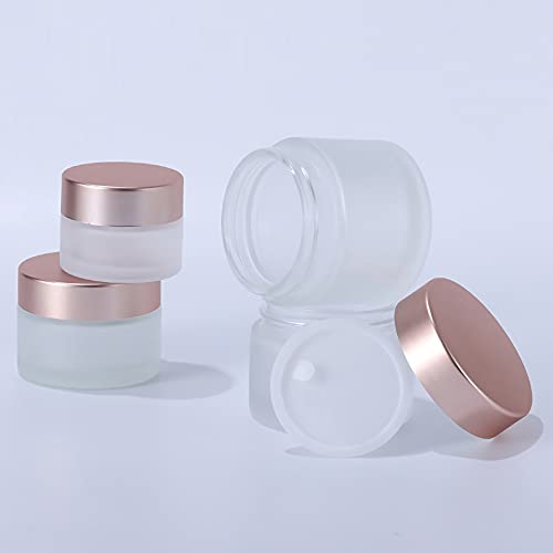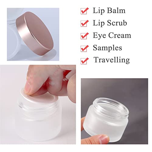 LusDoly 10 Pezzi 10g Trasparente Opaco Vasetti Vetro con Coperchio in Alluminio Rosa 10ml Barattolo Cosmetici Vuoto Viaggio Contenitore Cosmetico per Crema Balsamo Labbra Campione