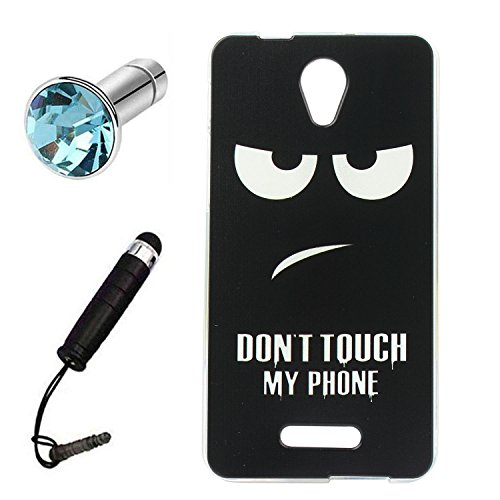 Lusee Custodia in Silicone Caso per Alcatel Onetouch Pop 4 plus 5.5 morbida di TPU Protettiva Cover Case + spina della polvere e penna tocco Nero Don't touch my phone