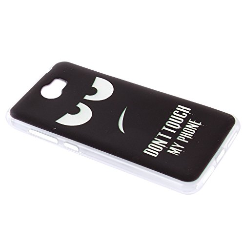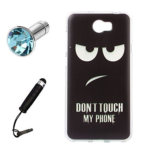 Lusee Custodia in Silicone Caso per Huawei Y5 II/Y5 2 morbida di TPU Protettiva Cover Case + spina della polvere e penna tocco Nero Don't touch my phone