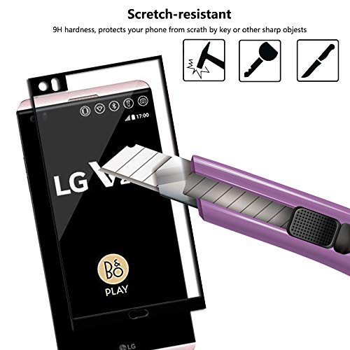 Lusee 3 Pezzi Vetro Temperato per LG V20 [Piena Copertura] Pellicola Protettiva [Durezza a 9H] [Chiaro HD] Anti Graffio/Anti Impronta 2.5D per Schermo per LG V20 Nero