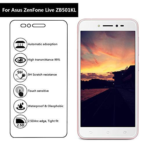 Lusee 3 Pezzi Vetro Temperato per Asus ZenFone Live ZB501KL 5.0 Pellicola Protettiva [Durezza a 9H] [Chiaro HD] Anti Graffio / Anti Impronta 2.5D per Schermo per Asus ZenFone Live ZB501KL 5.0