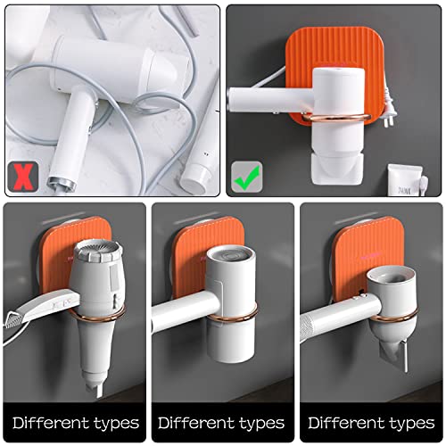Risparmia Spazio: Il supporto per asciugacapelli senza perforazione si piega con un angolo di 90 gradi e si ripone per risparmiare spazio quando non viene utilizzato. La parte posteriore del supporto consente al cavo dell'asciugacapelli di avvolgersi perfettamente, risparmiando molto spazio.