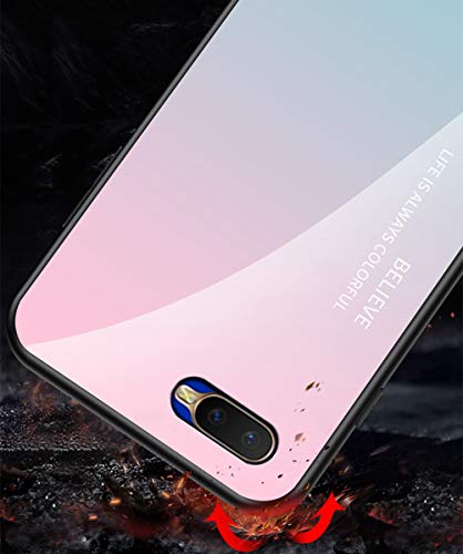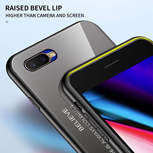 LUSHENG Custodia per Oppo K1/R15x/RX17 Neo, Cover Posteriore in Vetro Temperato Sfumato Custodia Morbida in TPU, per Oppo K1/R15x/RX17 Neo (6.4") - Grigio+Nero