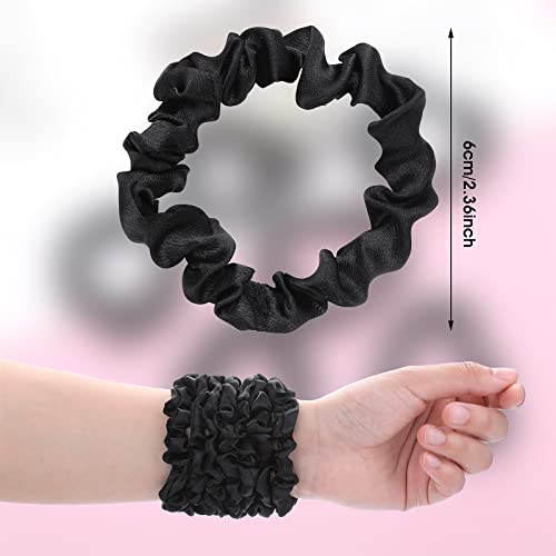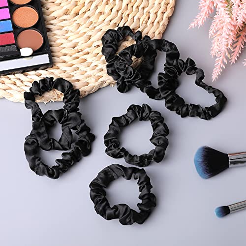 Lusofie 12 Pezzi Fasce per Capelli in Raso Nero Fasce Capelli in Seta Fasce per Capelli Elastiche per Ragazze da Donna Supporto per Coda di Cavallo Scrunchies per Capelli Seta (2,36 Pollici)
