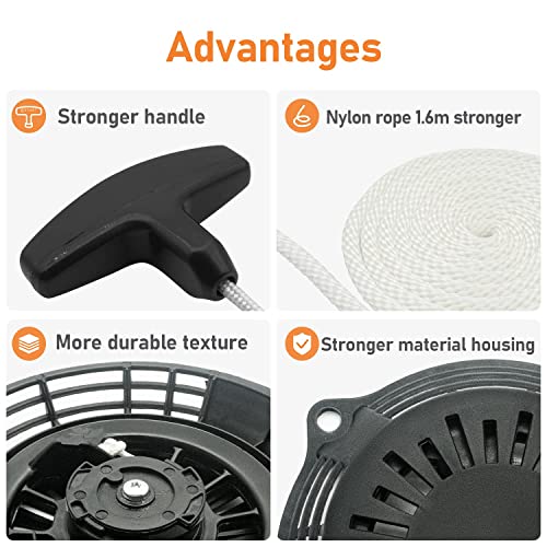 LUSQI Gruppo di avviamento a strappo per GCV135 GCV160 EN2000 HRU19 GC135 GC160, avviamento a strappo con robusto cavo di nylon estensibile in sarchiatore, motore di moto, nero
