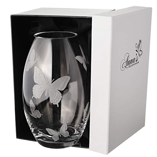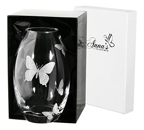Vaso di lusso a forma di farfalla, realizzato a mano, in vetro, decorato con farfalle sabbiate, in elegante confezione regalo foderata in raso, design europeo, trasparente, 23 cm