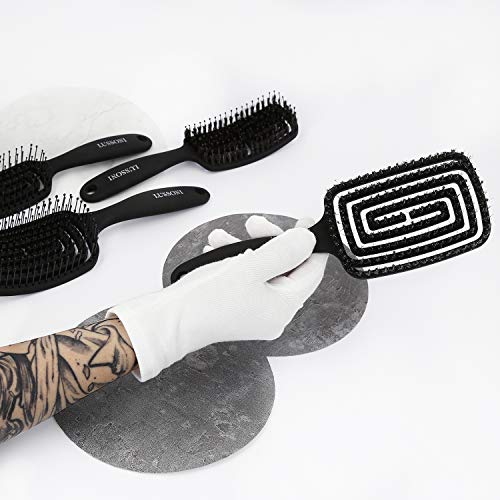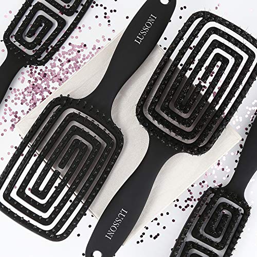 T4B LUSSONI Flexible Vent Set Styling Spazzola Paddle Capelli Professionale Ventilata Districante con Setole Naturali di Cinghiale, Capelli Asciutti e Bagnati, Confezione da 4 Pezzi