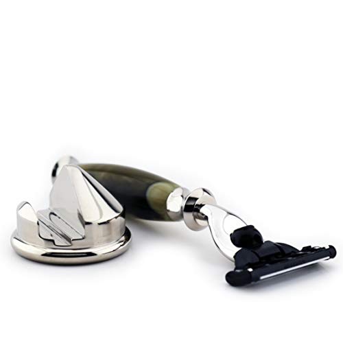 Lussuoso corno artificiale triplo bordo rasoio e supporto compatibile con manico in resina di alta qualità e supporto in acciaio inox tedesco cromato di alta qualità, ottima idea regalo per lui