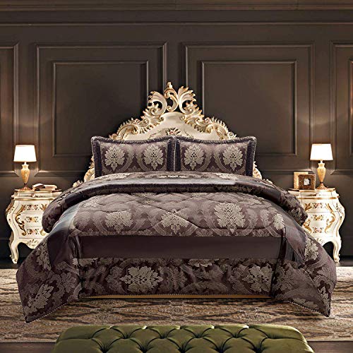 Lussuoso set 3 pezzi con copriletto trapuntato jacquard, copriletto e piumino formato matrimoniale e king, Betty Chocolate, Super King ( 270 x 260 CM )