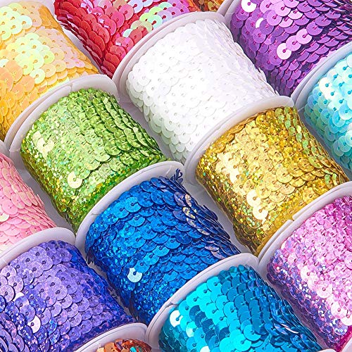 Lustrini di Paillettes,12 Paillettes Rolls 5 Merters 6mm Perla di Paillette Trim Spool String per Monili Fanno Fai Da Te Cucito Collana Decorazione del Vestito 12 Colori