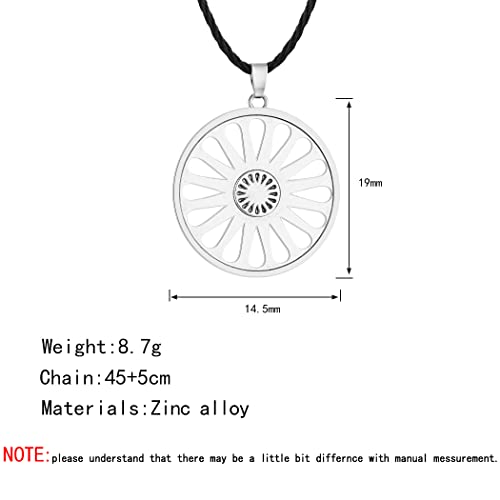 LUTAKU Collana con ciondolo a forma di ruota dei chakra, per uomini e ragazzi, con ciondolo a forma di ruota di zingara, catena in pelle con simbolo indiano Ashoka, Pelle