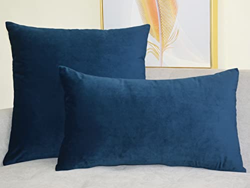 Lutanky confezione da 2 elegante velluto cuscino casi morbido cuscino solido rettangolo cuscino decorativo copre per divano letto auto 12"x20" (30x50cm)(Blu Navy, 2 pezzi)