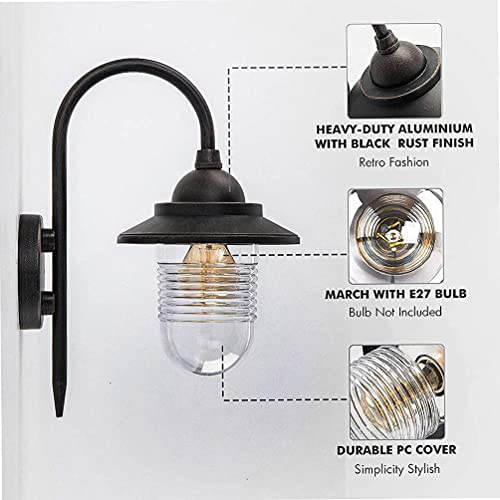 MATERIALE DUREVOLE: il telaio è realizzato in alluminio di alta qualità con finitura ruggine nera, che rende la lampada più adatta per l'uso esterno. Il PC trasparente di alta qualità può massimizzare la trasmissione della luce e fare un uso efficace della luce.