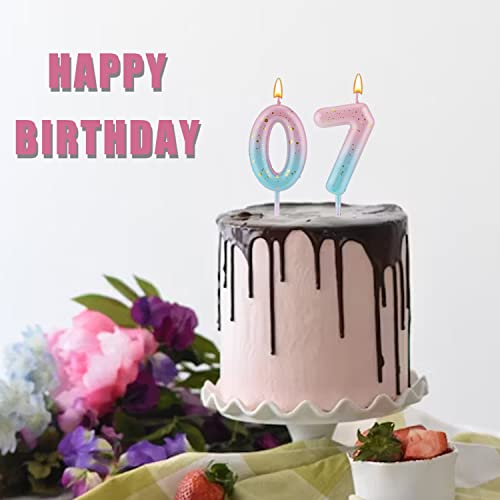 LUTER Candela con Lettera con Numero Gradiente, Candele di Compleanno con Gradiente Rosa Blu per Torta Candele di Compleanno con Lettera con Numeri Decorazione Compleanno Matrimonio (7)